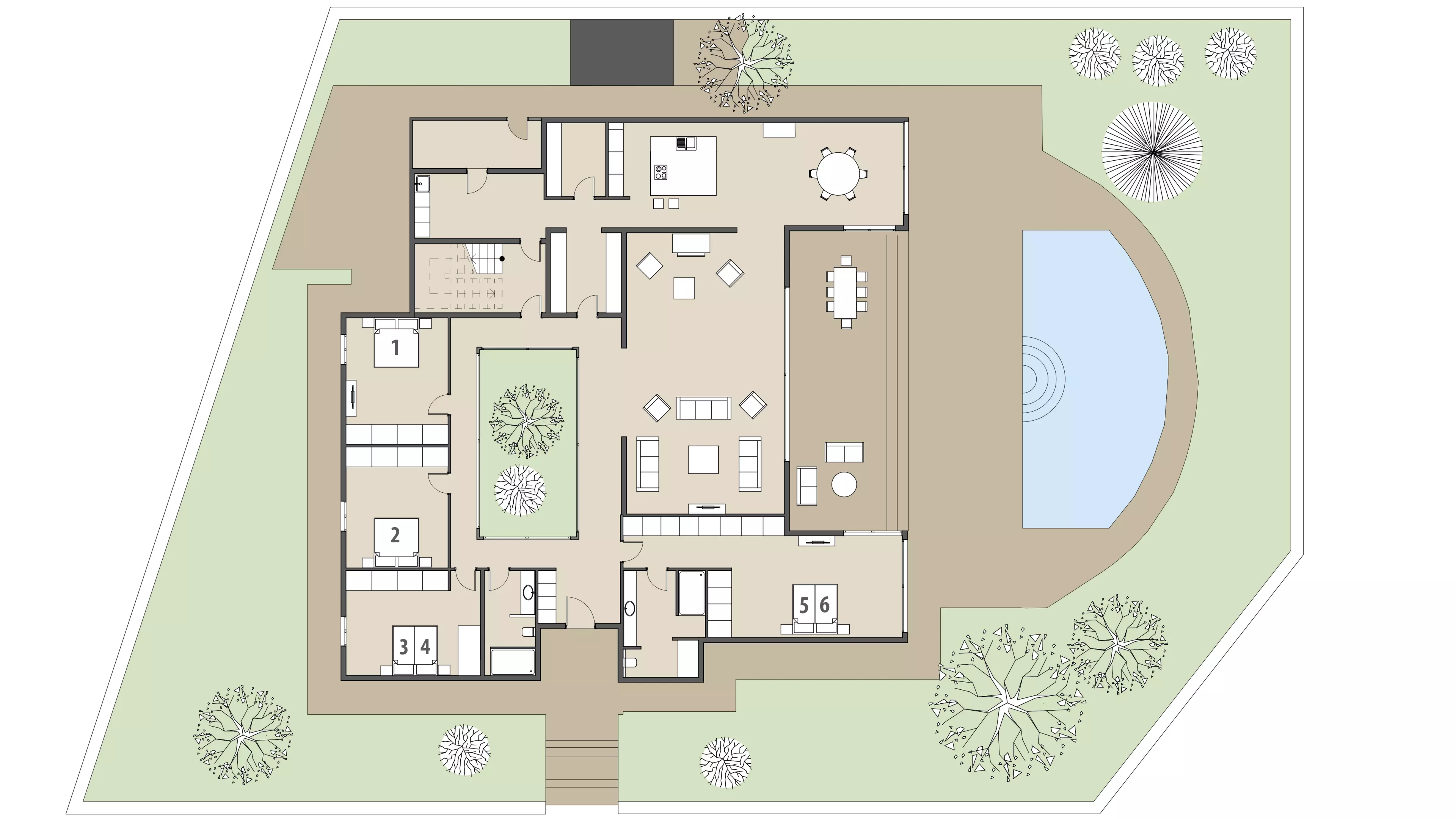 Diese Luxus-Villa in Marratxi, nahe Palma de Mallorca, bietet 4 stilvolle Schlafzimmer, teils mit Flachbild-TV, sowie 2 große Bäder. Insgesamt finden hier 8 Personen Platz. Eine moderne Miele-Küche mit Kochinsel und ein offener Wohn-Ess-Bereich sorgen für maximalen Komfort. Die große, überdachte Terrasse erstreckt sich entlang der Villa und verbindet das Haus mit der beeindruckenden Poollandschaft, die mit einer römischen Einstiegstreppe ausgestattet ist – ideal für entspannte Urlaubstage.