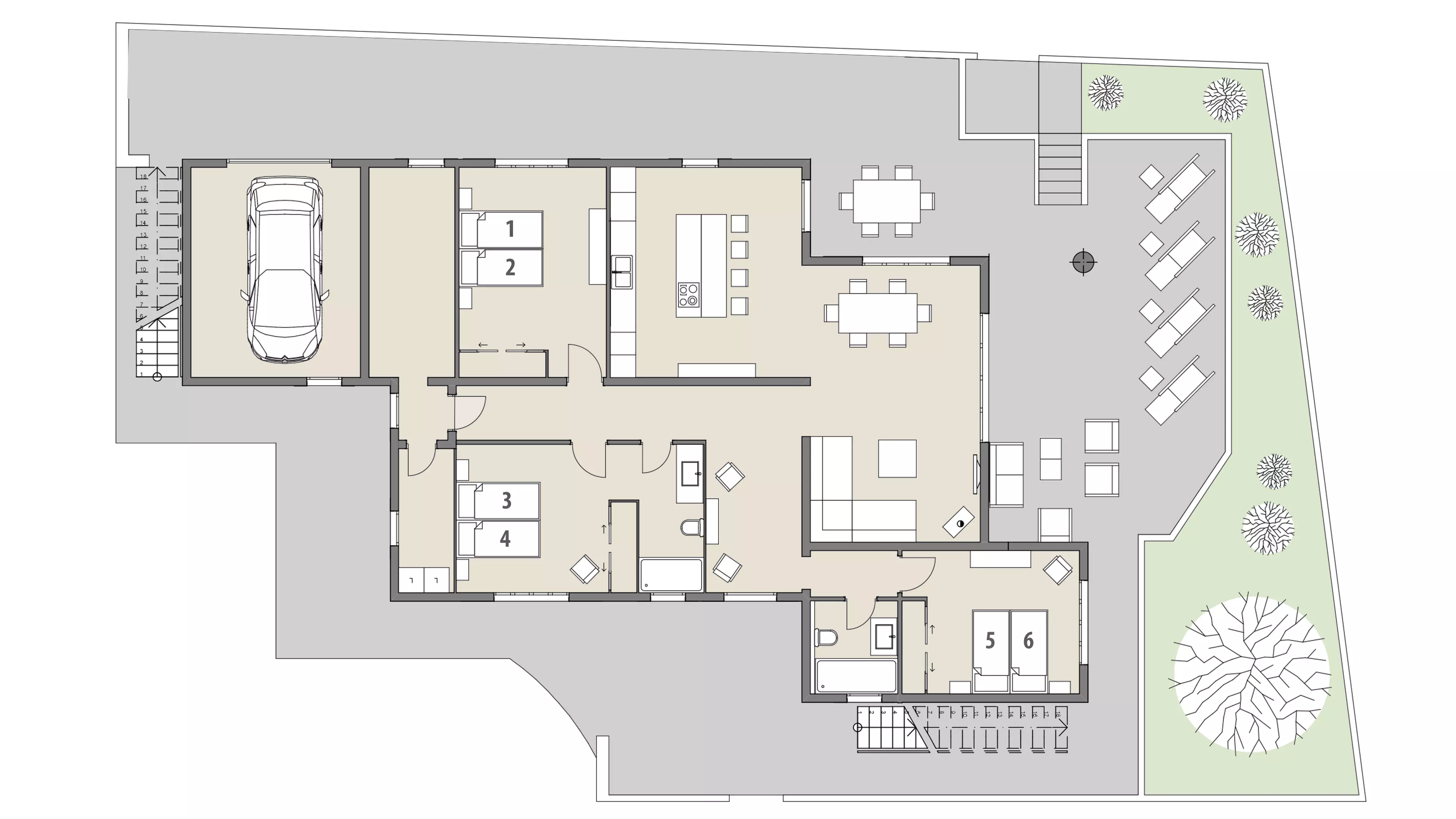 Extrakosten (vor Ort): Zuschlag bei Belegung mit 7-8 Personen: 120 € pro Nacht.