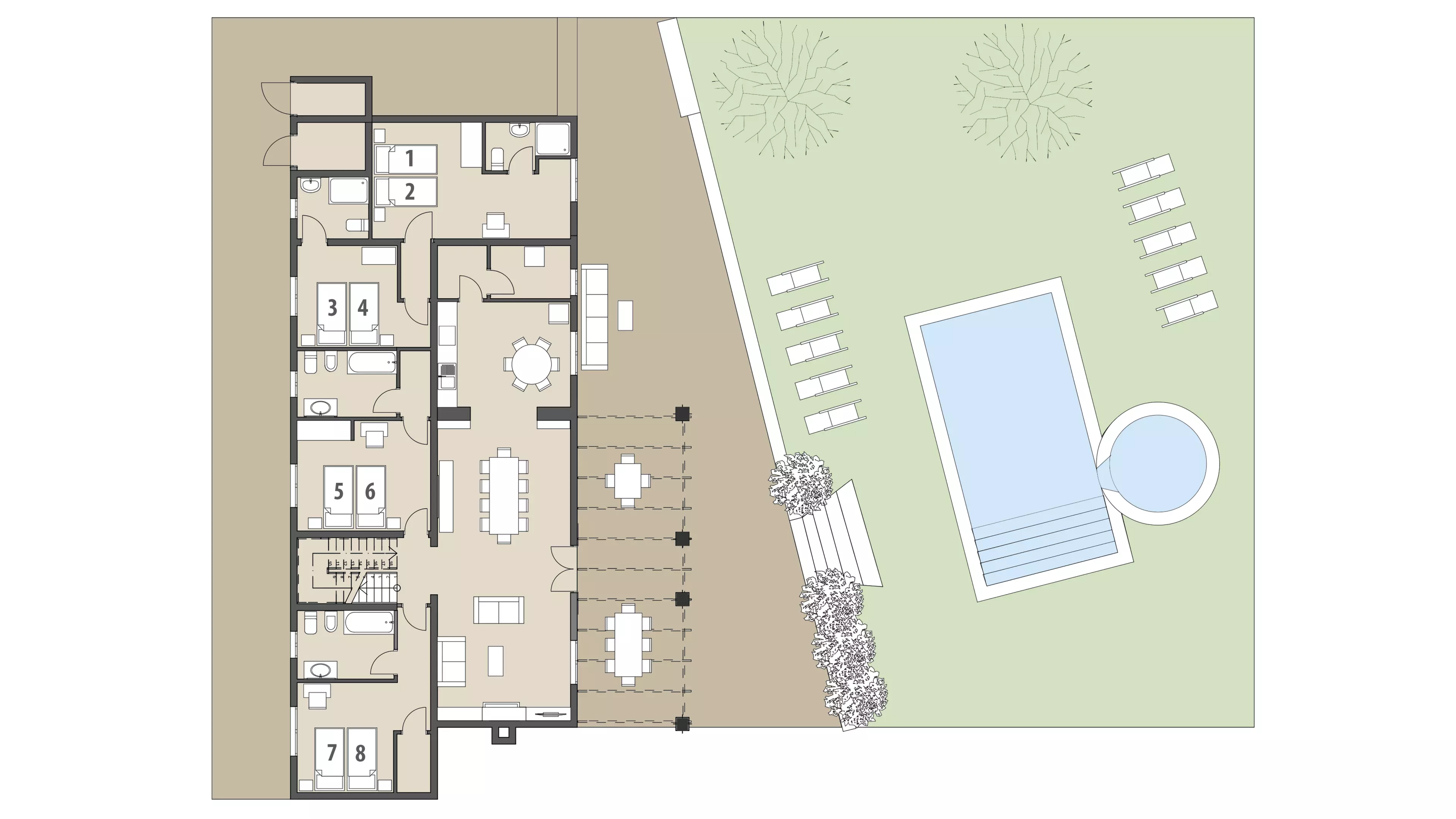 - Poolbereich mit integriertem Whirlpool