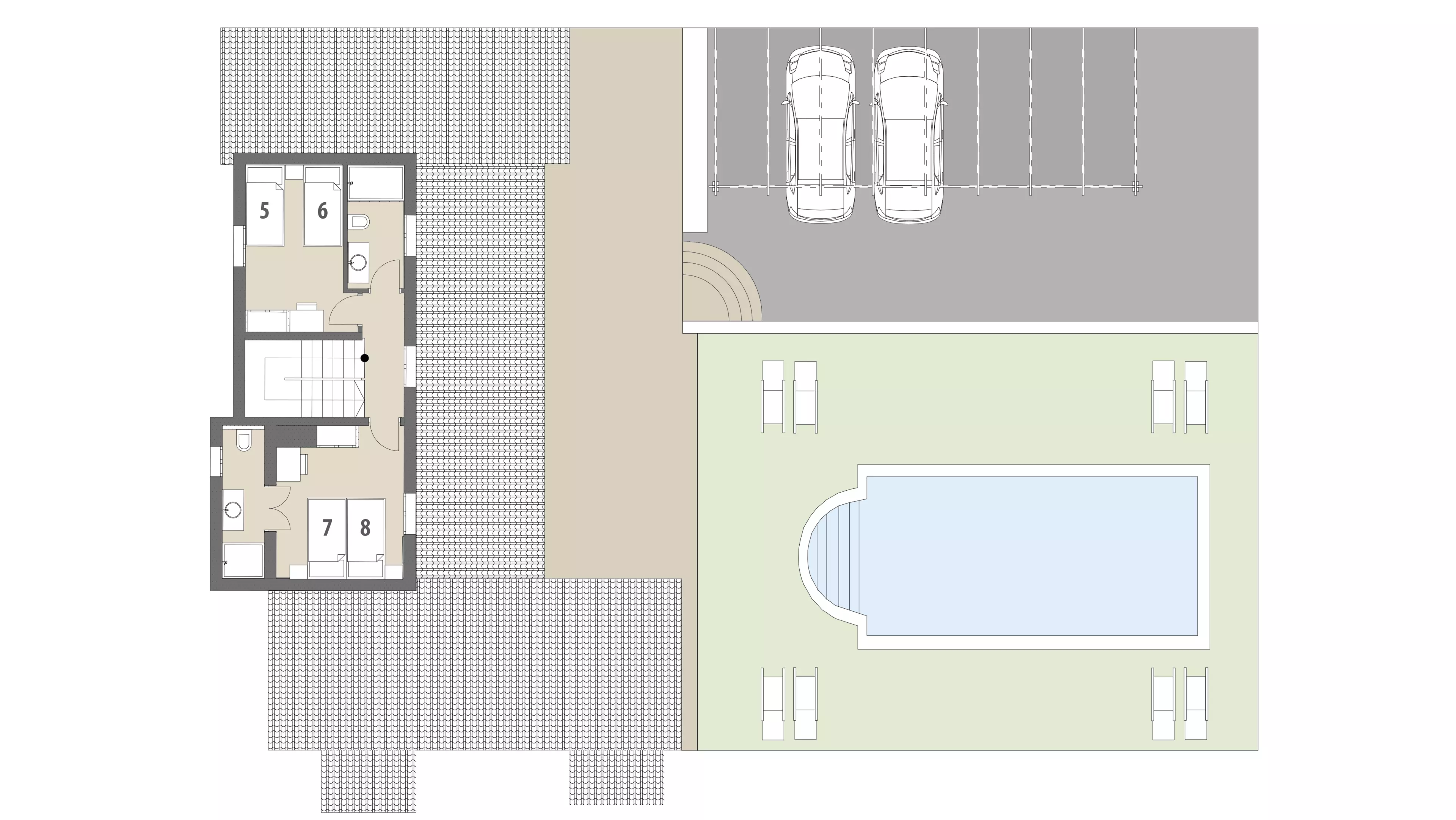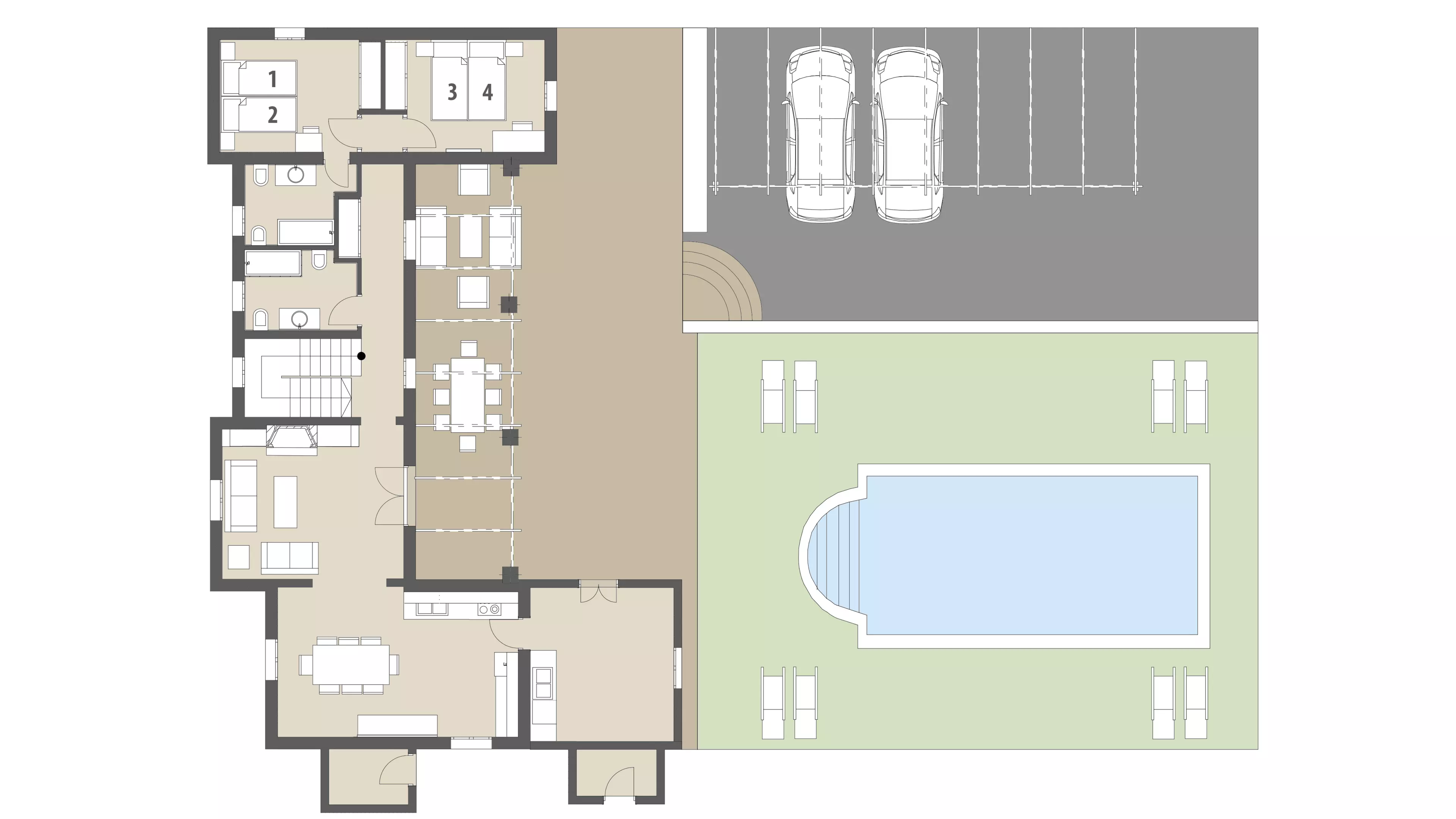 - Großer Pool mit umliegender Spielwiese