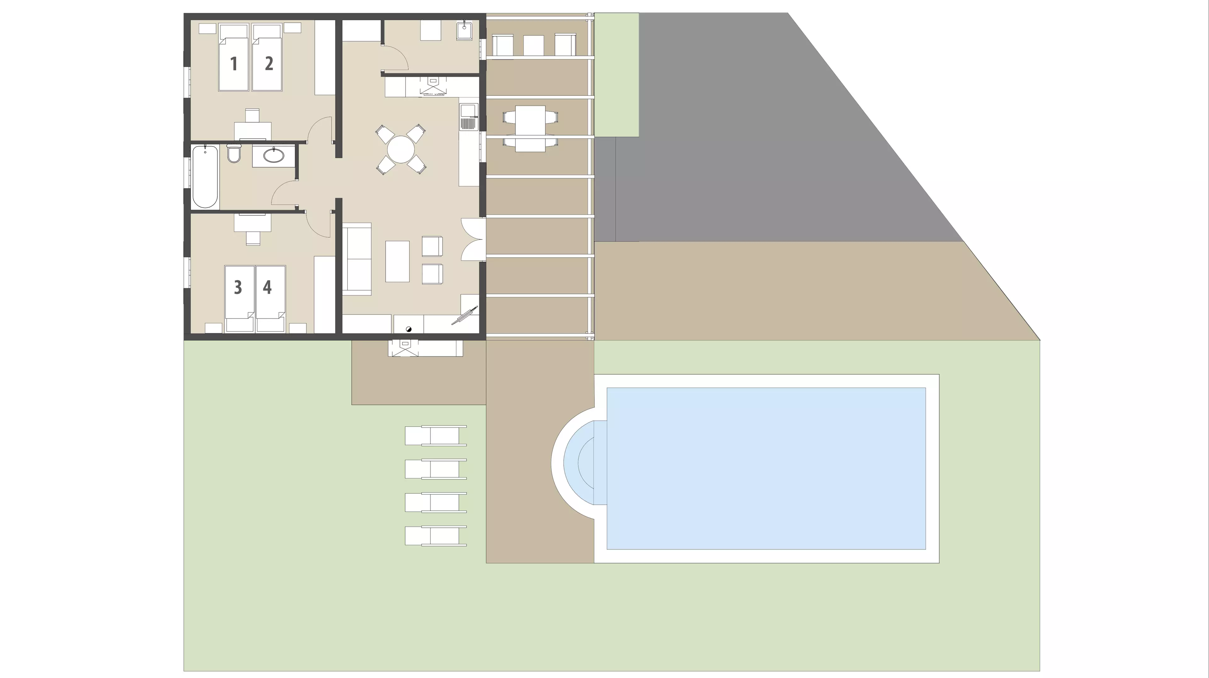 - Großer Pool mit Sonnenterrasse