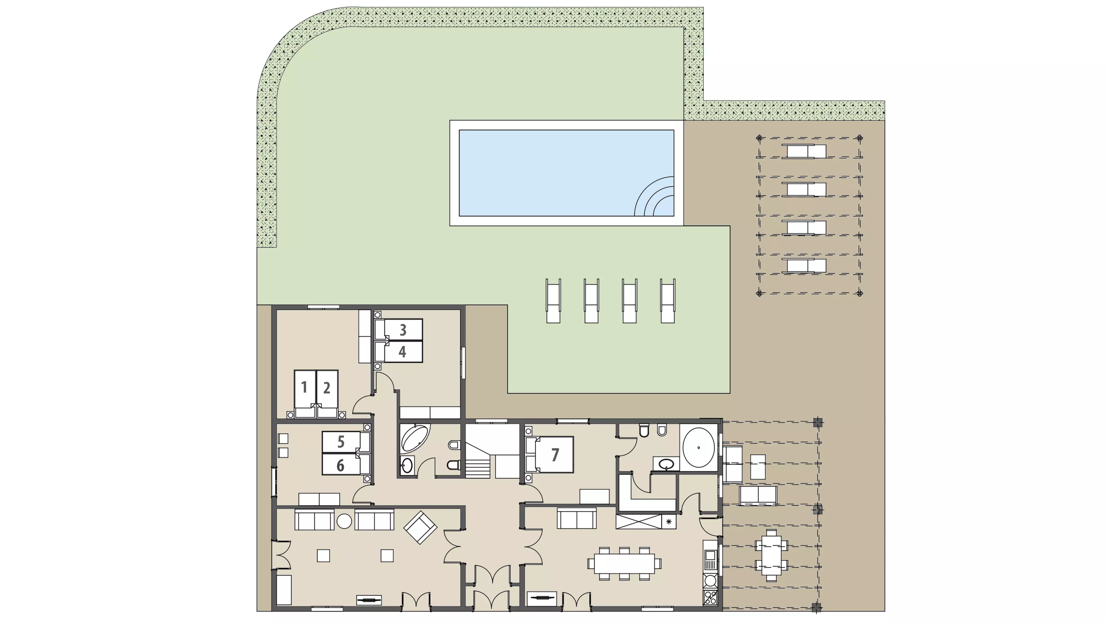 Die Finca "Llum" nahe Manacor ist der perfekte Ort für Familien und Sportbegeisterte. Auf einem 7.200 m² großen Grundstück bietet die Finca viel Platz für Spiel, Spaß und Entspannung. Besonders hervorzuheben sind die familienfreundliche Ausstattung mit Schaukel, Basketballkorb, Fußballtor und Außen-Tischtennis sowie der große, chlorfreie Pool mit sanftem Einstieg. Die zahlreichen Terrassen rund ums Haus laden zu geselligen Abenden ein. Die Finca bietet Platz für 8 Gäste in 4 klimatisierten Schlafzimmern und 3 Bädern – ideal für unvergessliche Tage auf Mallorca.