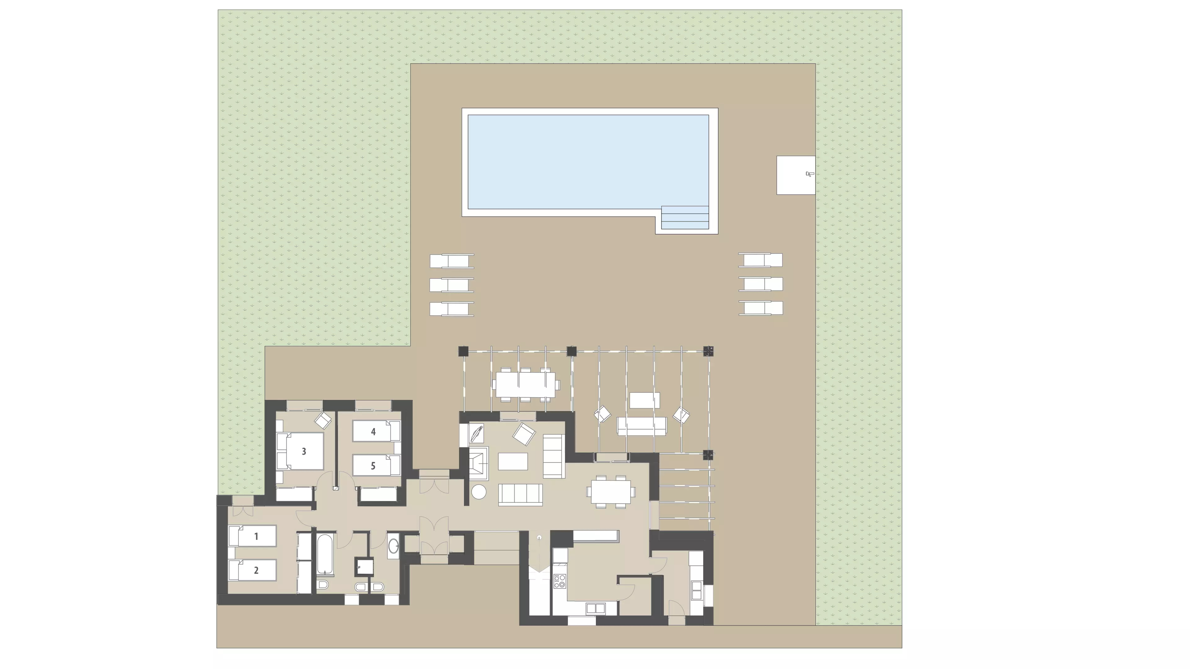 - Großer 55 m2 Pool mit riesiger Terrasse