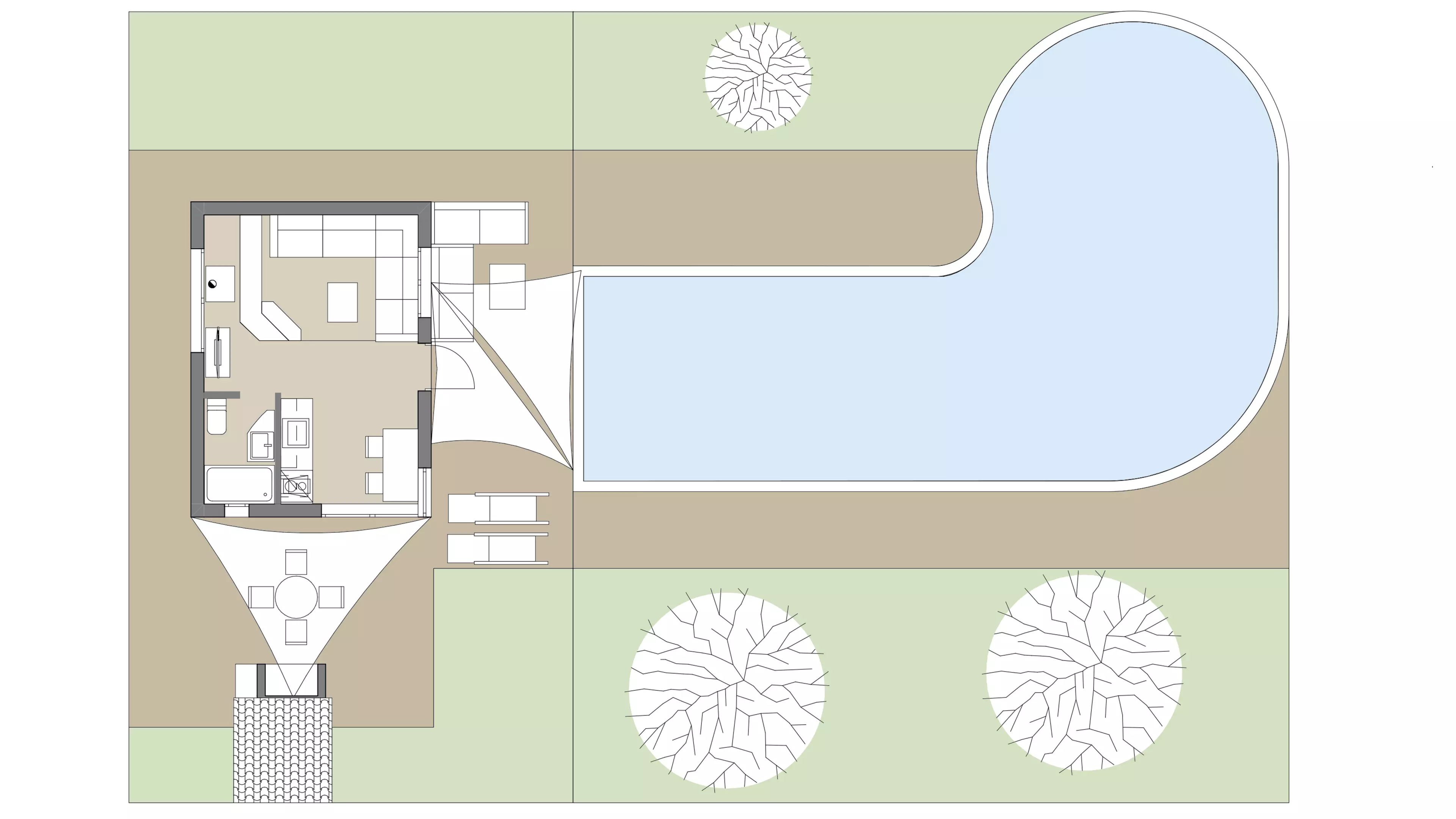 - Pool mit Strandflair und Außendusche