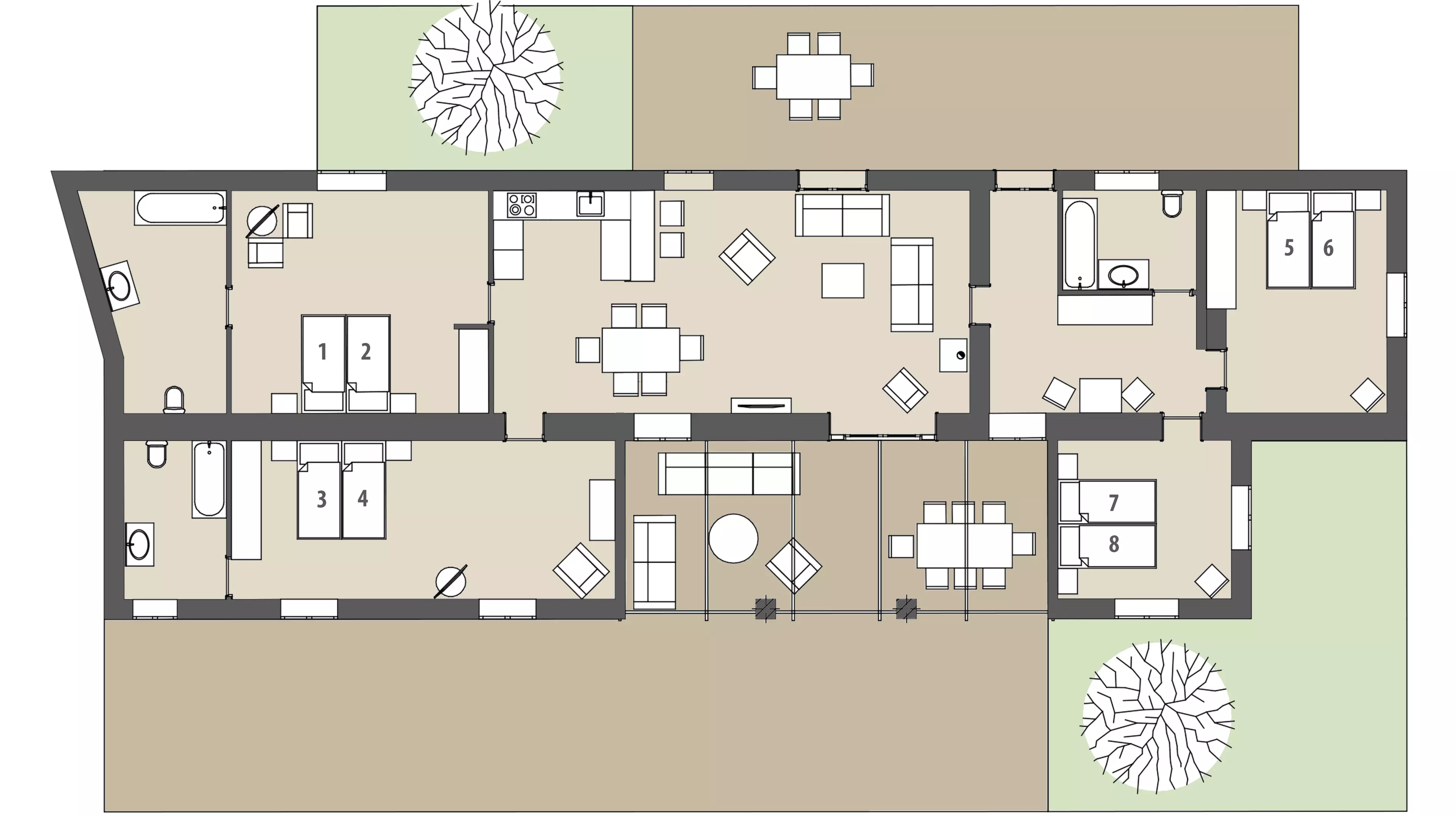 Extrakosten (vor Ort): Für den 7ten und 8ten Gast wird ein Zuschlag von 30 € pro Nacht und Person in bar erhoben.