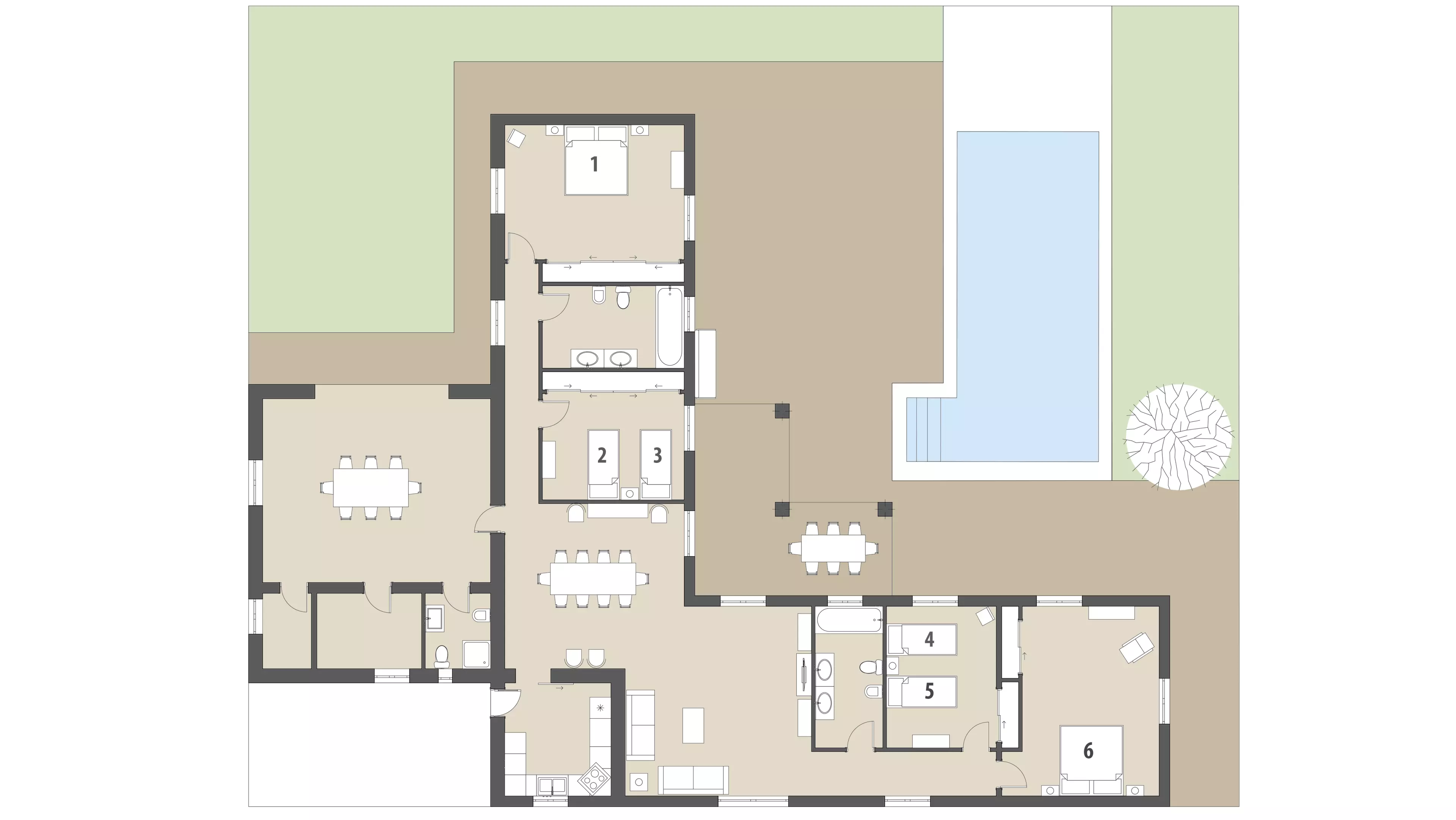 Die stilvolle Finca "Can Mates Nou" überzeugt mit mediterranem Flair, großem Pool, gepflegtem Garten und herrlichem Außenbereich mit Sonnenliegen und schattiger Terrasse. Eine harmonisch eingerichtete Wohnküche, 4 helle Schlafzimmer und 3 moderne Bäder bieten viel Komfort für bis zu 8 Gäste. Familien mit Kindern genießen hier Privatsphäre und Ruhe – ideal zum Entspannen. Der offene Wohn-/Essbereich lädt zum Verweilen ein, während draußen ein Grillplatz und ein massiver Esstisch unter der Veranda auf gesellige Abende warten. Es steht eine Tischtennisplatte zur Verfügung. Die perfekte Finca für erholsame Tage auf dem sonnigen Mallorca.