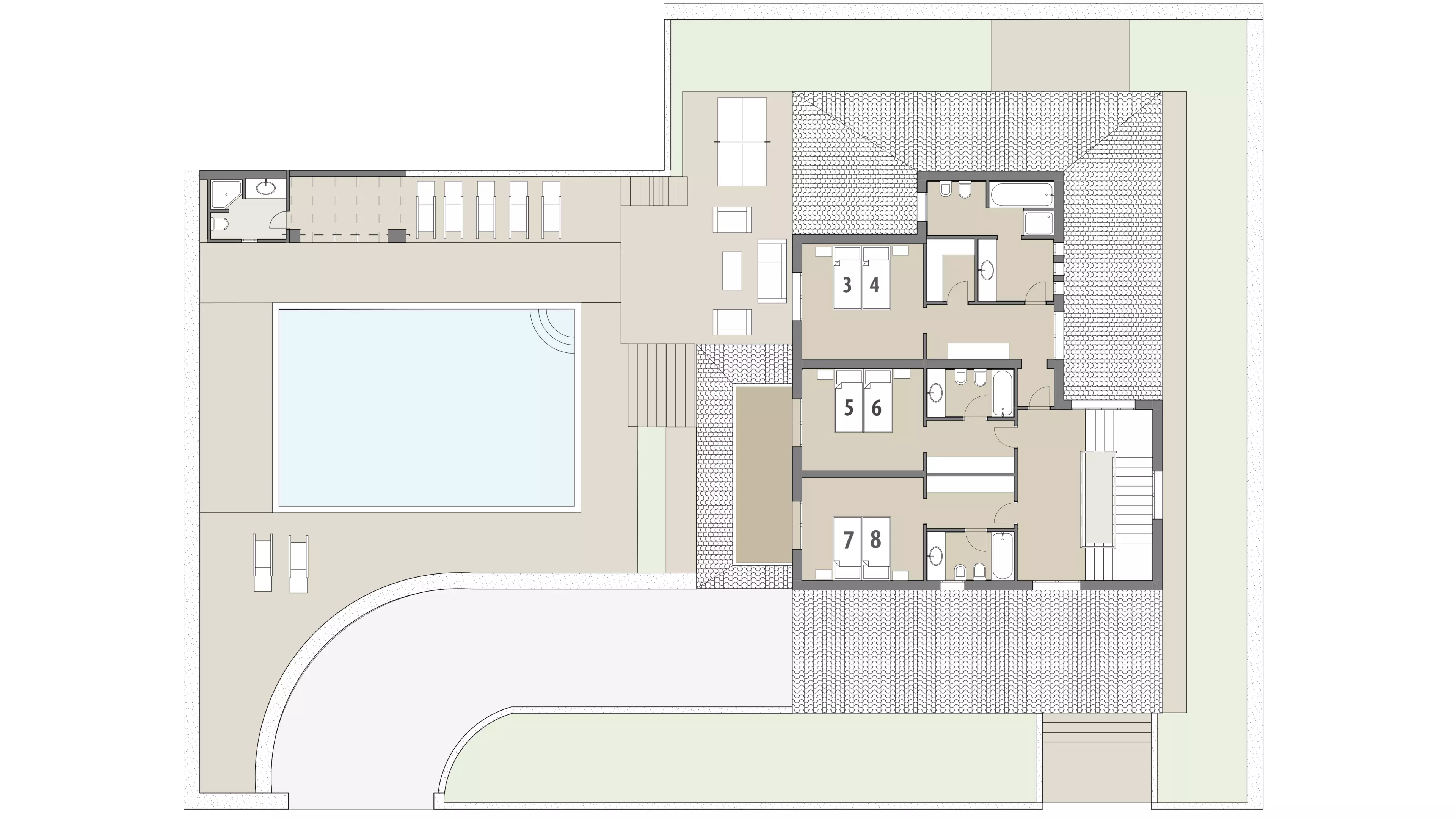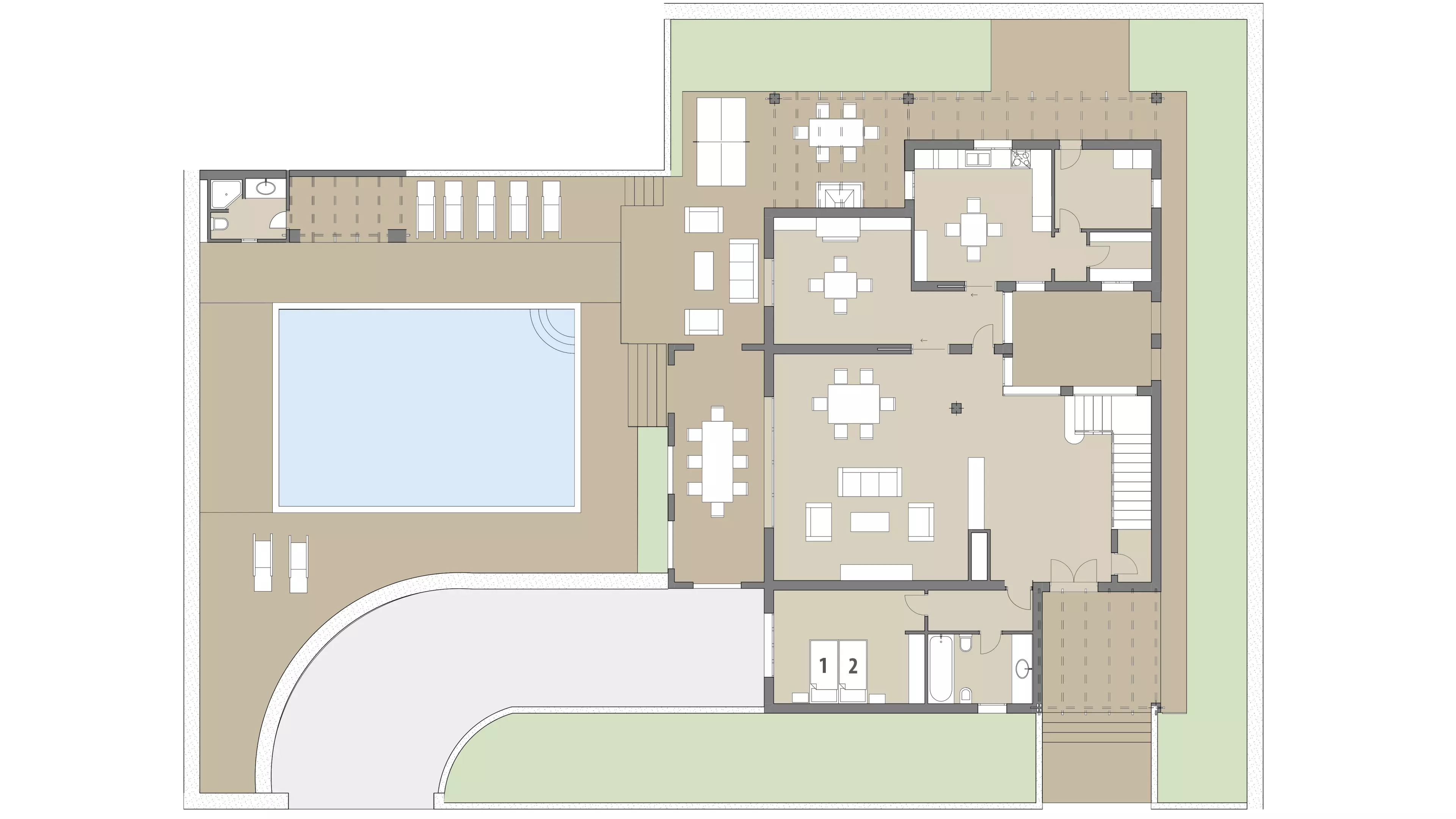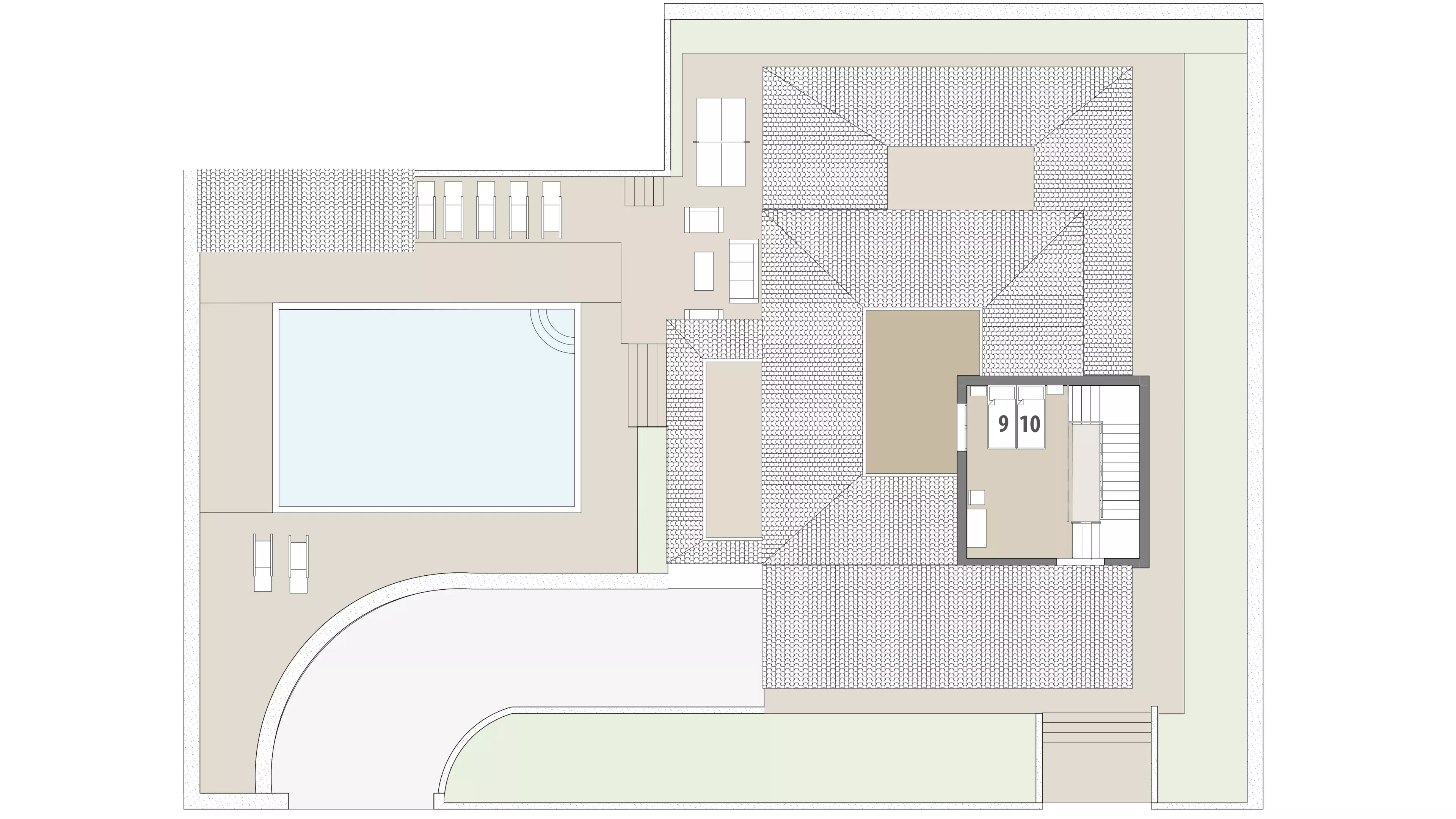 - Großzügiger Außenbereich mit Pool und Terrassen